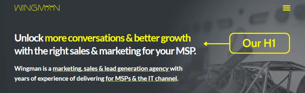 - Connected? – When we write H1s for our clients, we know exactly who our target audience is. That means we can connect our H1 to a key pain point – the Big Business Issue that they’re trying to solve.
